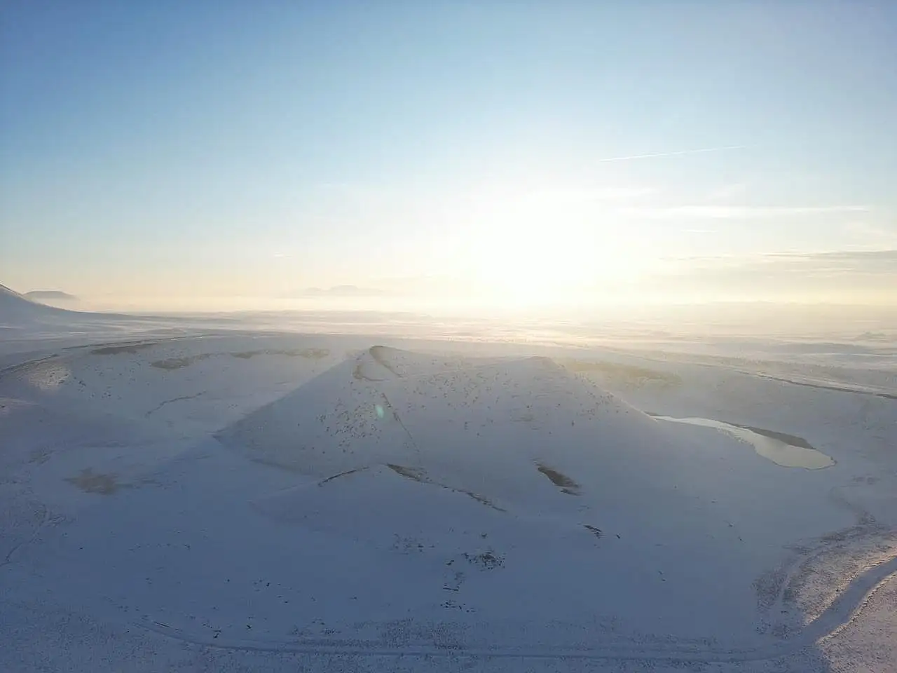 Karın beyaz örtüsü, göle beyaz bir gelinlik giydirirken, oluşan eşsiz manzara ziyaretçilerin büyük ilgisini çekiyori. Özellikle gün batımında karın beyazı ile gökyüzünün turuncu ve kızıl tonlarının buluşması, görenleri kendine hayran bıraktı.