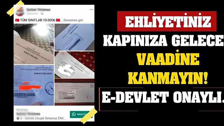“E-DEVLET'TEN ONAYLI EHLİYETİNİZ HAZIR’ VAADİNE DİKKAT”