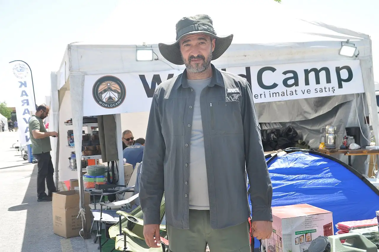 Kendi üretimleriyle 60-70 çeşit kamp malzemesi sunduklarını belirten World Camp kurucusu İbrahim Yaşar, “Biz bu işe gönül vermiş bir insanız. Severek ve candan yapıyoruz. Dolayısıyla belli bir süre sonra bazı ürünleri kendimin üretmesi gerektiğini düşündüm. Kendi üretimini yaptığımız 60-70 kadar ürünümüz var. Bunun yanı sıra bir de çadır bayiliği aldık. Var olan markamızı süslemiş olduk. Çadır olarak Konya'da 20 çeşit şişme çadırımız var. Çeşitlilik olarak tekiz diyebilirim. Fuarda bulunan ürünlerimiz şişme çadır, kamp sandalyeleri, masalar, kamp sobaları, kamp ateş çukurları, mangallar, kamp bıçakları ve sayamadığım birçok çeşit var. Bir insanın kampta neye ihtiyacı varsa yüzde 90'ı elimizde mevcut. Fuara açılış gününde katılım olarak beklentimizin üstündeydi. Baya güzel bir karşılık aldık ve Konya'da bunun devam etmesini istiyoruz. Konya hakkında dışarıdan duyduğumuz şeyler canımızı sıkıyor. Konya kısır bir bölge artık sosyalleşmek istiyoruz ve bunun da son iki yıldır kesinlikle bir tık üstüne çıktığımızı düşünüyorum. Sosyallik olarak iyi durumdayız diye düşünüyorum” ifadelerini kullandı.