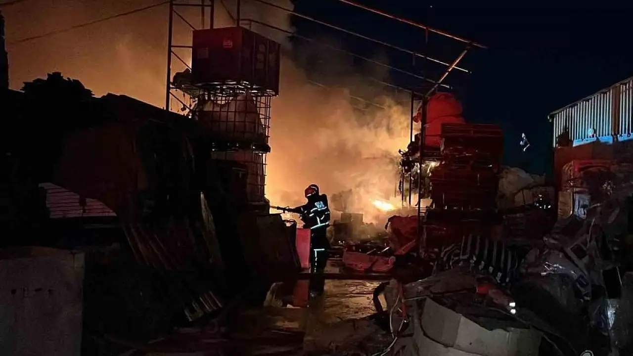 İtfaiye ekiplerinin depodaki soğutma çalışmaları sürüyor.