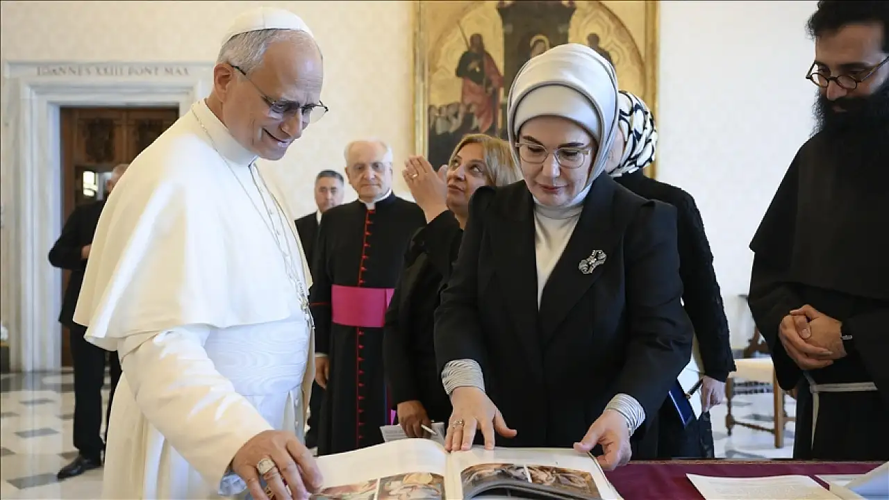 Papalık Sosyal Bilimler Enstitüsü'nde gerçekleşecek 'Kardeşlik Temelli Ekonomi: Etik Çoktaraflılık' başlıklı etkinlikte konuşmak üzere Vatikan'da bulunan Emine Erdoğan, Vatikan Apostolik Sarayı'nda Papa 14.Leo ile de görüşme gerçekleştirdi.