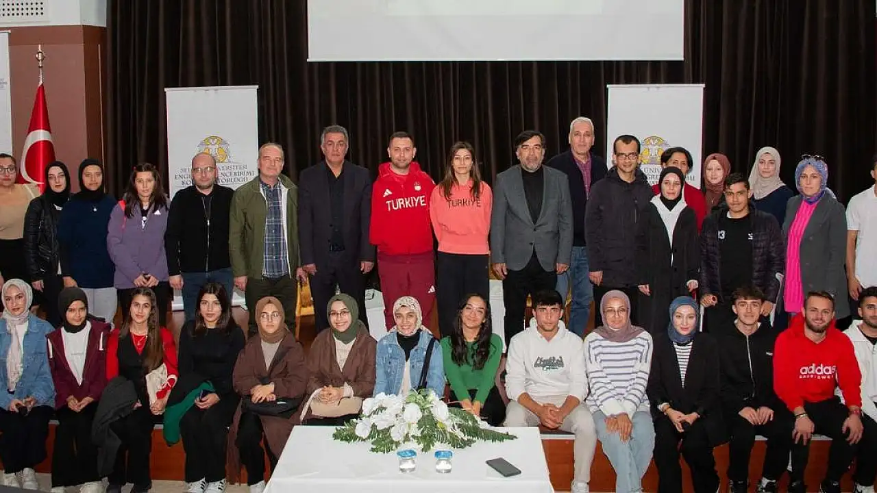 Selçuk Üniversitesi, sporun engelleri nasıl aşabileceğini vurgulayan anlamlı bir buluşmaya ev sahipliği yaptı. 2024 Paris Paralimpik Oyunlarında Kadınlar 57 kilo para tekvandoda gümüş madalya kazanan milli tekvandocu Gamze Gürdal ve erkekler +80kg son 16 turunda mücadele etme başarısı gösteren milli sporcu Mehmet Sami Saraç, Sultan Alparslan Kültür Merkezinde öğrencilerle bir araya geldi. Engelli Öğrenci Birimi Koordinatörü Doç. Dr. Mustafa Güler, engelli bireyler için temel sorunun, toplum olarak oluşturulan engeller olduğunu belirtti. Güler, “Üniversitemizdeki hiçbir engelli öğrencimizi geride bırakmadan onların hedeflerine ulaşmalarına ve hayallerini gerçekleştirmelerine yardımcı olmayı hedefliyoruz” dedi.