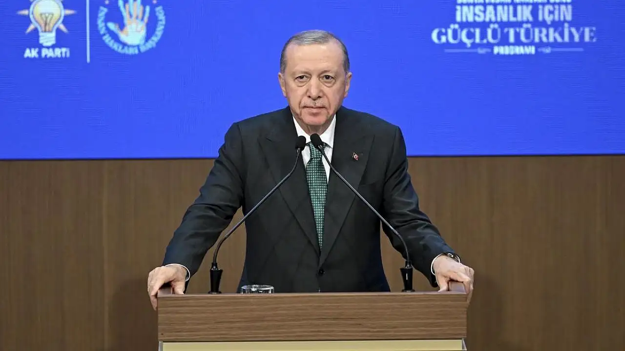 Cumhurbaşkanı Recep Tayyip Erdoğan, AK Parti Kongre Merkezi'nde 'İnsanlık İçin Güçlü Türkiye' programına katıldı.Cumhurbaşkanı Erdoğan'ın açıklamalarından öne çıkan başlıklar: Aziz milletim, İnsan Hakları Başkanlığımızın kıymetli mensupları, kıymetli yol