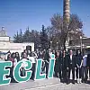 Ereğli’nin köklü tarihini ve zengin kültürel mirasını gençlere tanıtmak amacıyla başlatılan proje ile gençler, Ereğli adına her şeyi tanıyacak. Ereğli Kaymakamı Oğuz Cem Murat, "Ereğli’mizin köklü tarihini ve zengin kültürel mirasını gençlerimize tanıtmak amacıyla başlatılan ‘Kültür Yolculuğu: Ereğli’nin Hikayesi, Genç Adımlar, Kadim İzler’ projemiz başladı. Ereğli Kaymakamlığımızın öncülüğünde, İlçe Milli Eğitim Müdürlüğümüz ve Ereğli Sosyal Bilimler Lisemiz iş birliğiyle yürütülen bu özel projede, 11. sınıf öğrencilerimiz Ereğli’nin tarihi ve coğrafi güzelliklerini yerinde keşfediyor. Hititlerden Osmanlı’ya uzanan köklü mirasımız, coğrafyamızın eşsiz güzellikleri ve kültürel değerlerimiz artık sadece kitaplarda değil; gençlerimizin hafızasında ve kalbinde de yaşayacak. Adım adım gezilen rotalarla hem tarihe tanıklık ediyorlar hem de Ereğli ile bağlarını güçlendiriyorlar. Bu yolculuk, sadece bir gezi değil, bu yolculuk; aidiyet, farkındalık ve değerlerle büyüyen bir neslin ayak sesleri" ifadelerini kullandı.
