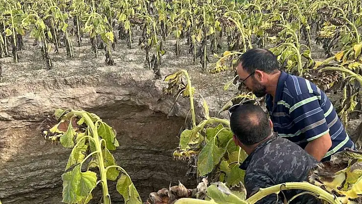 Eskişehir'in Çifteler ilçesindeki ayçiçek tarlasında 20 metrelik dev obruk oluştu.