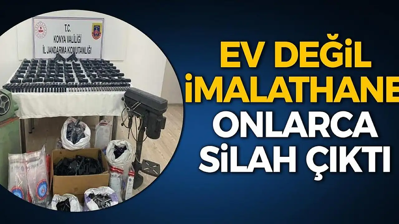 Evde yapılan aramada 105 adet marka ve seri numarası bulunmayan tabanca, matkap, yiv ve set açma makinesi, zımpara makinesi, tabanca alt gövdeleri, namluları, üst kapakları, şarjörleri, yayları, mekanizma kalıpları, milleri ve diğer birçok parça ele geçirildi.