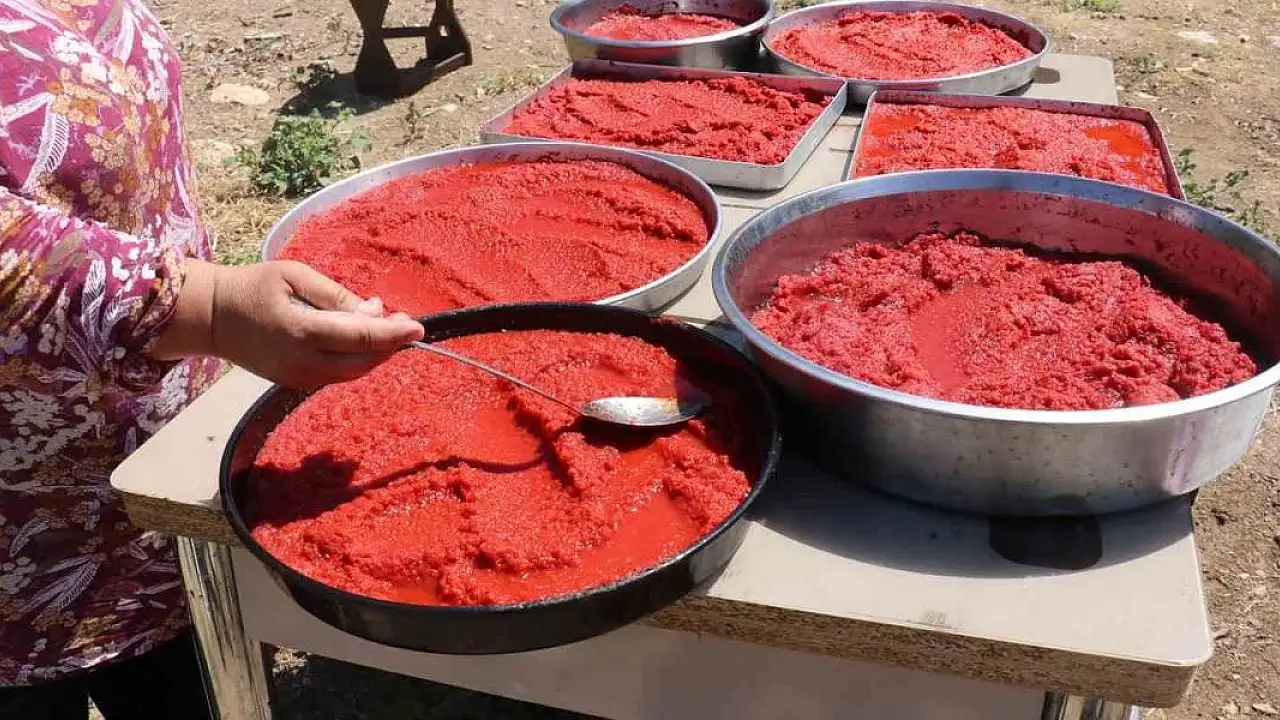 Kırmızı biber ve domatesleri karıştırarak yaptıkları salçayı güneşte beklettikleri ifade eden İde, imkanı olması halinde ev ekonomisine katkı için de salça yapıp satmak istediğini söyledi. Depremde evini kaybettiğini ve aileden kalan bir bahçede ev yaptıklarını anlatan Canan Özen İde, bu şekilde yaşam mücadelesi verdiklerini de dile getirdi.