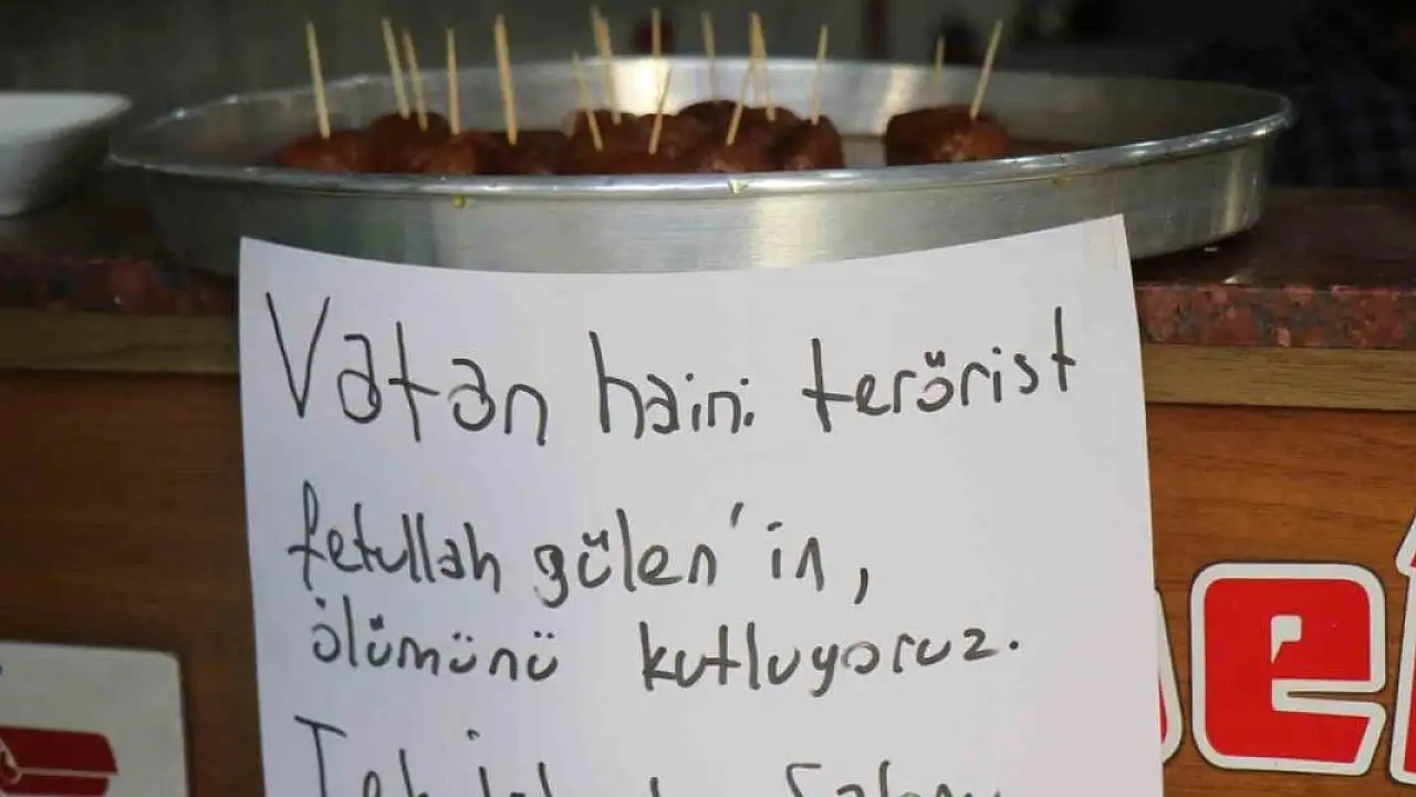 Sakarya'nın Adapazarı ilçesinde esnaf, Fetullahçı Terör Örgütü (FETÖ) elebaşı Fetullah Gülen'in ölümü sebebiyle lokantasında bedava tatlı dağıttı.İsmail Özdemir isimli lokanta sahibi, ABD'nin Pensilvanya eyaletinde yaşayan FETÖ elebaşı Fetullah Gülen'in s