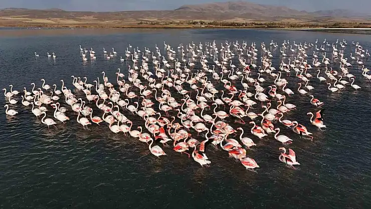 Doğunun saklı cenneti Van'daki Erçek Gölü, zarif misafirleri olan flamingoları ağırlamaya devam ediyor.Göçmen kuşların Kuzey Afrika'dan İran'a uzanan yolculuğunda en önemli konaklama merkezlerinden Van Gölü havzası, sulak alanlarıyla çok sayıda türden bin