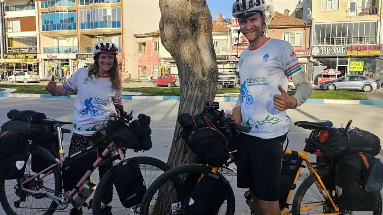 Fransız bisiklet tutkunu çift, Beyşehir'de mola verdi