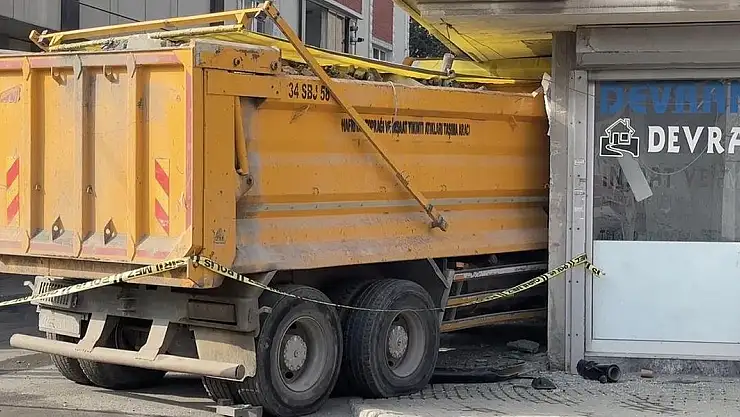 Yeşilkent Mahallesi Atatürk Caddesi'nde seyreden Ş.G. idaresindeki, Avcılar Belediyesine ait hafriyat kamyonunun freni boşaldı. Önce park halindeki 34 RC 0468 plakalı cipe çarpan kamyon, ardından emlak ofisinin duvarını yıktı. Kazada, kamyonun bir kısmı yıkılan duvardan emlak ofisine girdi.