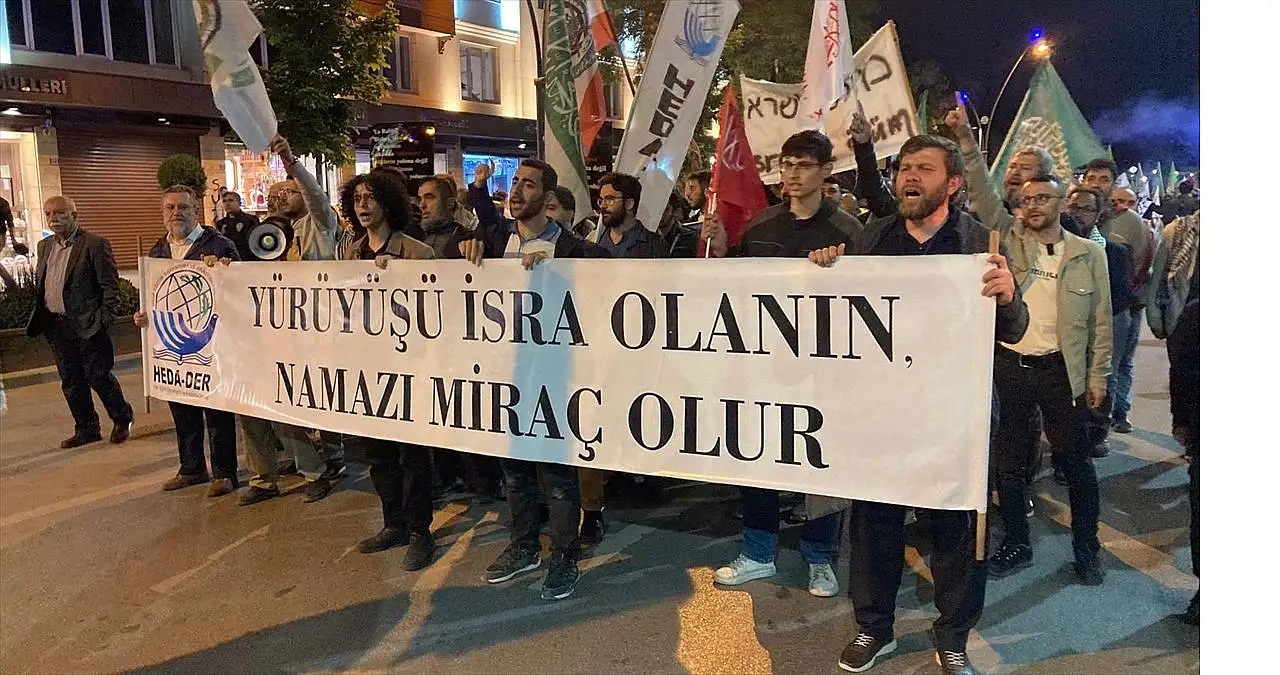 Halk Eğitim Araştırma ve Dayanışma Derneği (DEDA-DER) ile Peygamber Sevdalıları Derneğinin ortaklaşa düzenledikleri İsrail'e tepki yürüyüşü kent merkezindeki Kültür Park önünden başladı.Yaklaşık 800 kişinin katıldığı 1 kilometrelik yürüyüş güzergahı, poli