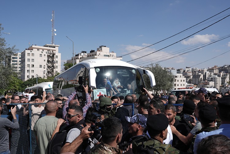Ateşkes anlaşmasının ilk aşaması kapsamında aralarında "müebbet hapis cezası"na çarptırılanların da olduğu 96 Filistinli esirin serbest kaldığı ifade edilen haberde, Filistinlilerin Ramallah'taki kültür sarayına getirildikleri kaydedildi.