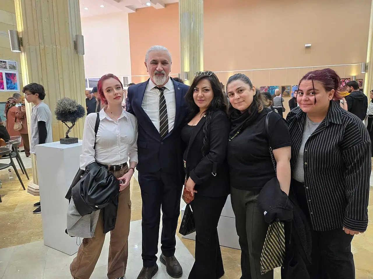 Bu sergiyle amacımız, öğrencilerimizin farklı sanat disiplinlerini tanımalarını sağlamak, mezunlarımızla bağlarını güçlendirmek ve onları sanat alanında ilerlemek isteyen genç yetenekler için birer rol model olarak öne çıkarmaktır" şeklinde konuştu.