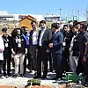 Alandaki kerpiç evleri inceleyen Efendioğlu, gençlerle sohbet ederek projelerine ilişkin bilgi aldı.