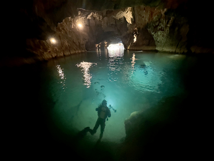 Dalışta, mağaradaki gölde yaşayan yengeç, kaplumbağa, kurbağa gibi canlılar görüntülendi.