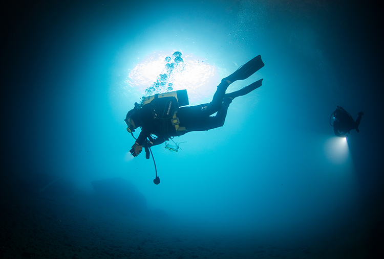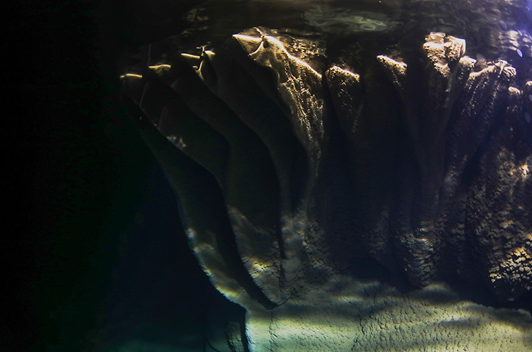 Su derinliği bazı bölgelerinde 40 metreye ulaşan mağarada AA foto muhabiri Mahmut Serdar Alakuş ile Akdeniz Üniversitesi Su Ürünleri Fakültesi'nden Prof. Dr. Mehmet Gökoğlu ve ekibi dalış gerçekleştirdi.