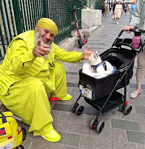 Bir röportajında Konya Bozkırlı olduğunu ifade eden Molla Mustafa, kendine has ve benzersiz giyim tarzıyla İstanbul'un kalbi Taksim Meydanı'na neşe ve renk katmaya devam ediyor.