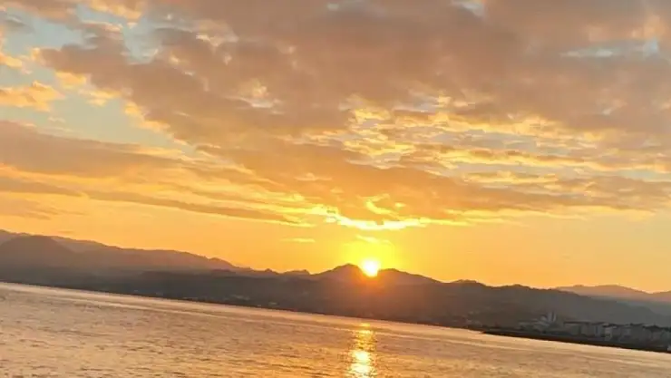 Ordu'nun Fatsa ilçesinde, sahilde gün doğumu çekmek isteyen bir kişi, bulutlara yansıyan ay yıldız siluetini kayda aldı.