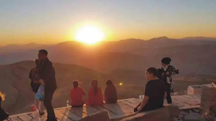 Adıyaman'ın Kahta ilçesinde UNESCO Dünya Kültür Mirası'nda yer alan ve Helenistik Dönem Kommagene uygarlığının efsanevi kralı Antiochos Teos'un Adıyaman'ın Kahta ilçesinde sınırları içinde inşa ettiği anıtsal alana gelen ziyaretçiler, güneşin doğuşunu med