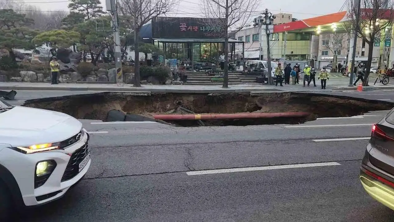Güney Kore'deki bir otoyolda meydana gelen göçüğün ardından 20 metre çapında ve 30 metre derinliğinde dev çukur oluştu. Hareket halindeki bir motosiklet çukura düşerken, motosikletin sürücüsünü arama çalışmalarının sürdüğü bildirildi. Olayda bir otomobil sürücüsü de yaralandı.