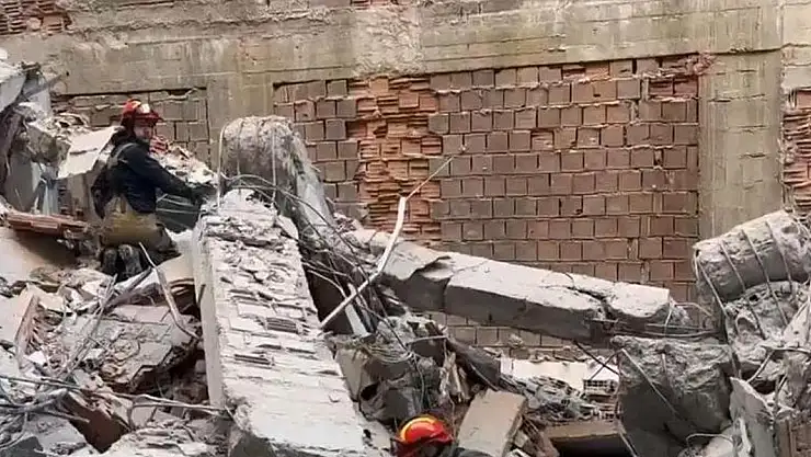 Yıkım esnasında binada meydana gelen kısmi çökmede 2 işçi göçük altında kaldı.