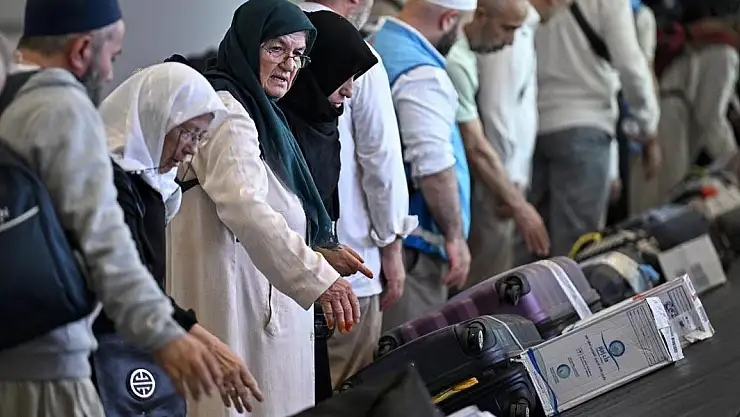 Hacılar, pasaport kontrolünün ardından bagajlarını alarak terminalden çıkış yaptı.