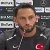 "Burada beraber başladık, beraber bitireceğiz. Dünkü maçtan sonra her şey daha zor oluyor. Ama dünyanın sonu değil." diyerek konuşmasına başlayan Hakan Çalhanoğlu, "Başından bu yana gruptan çıkma hedefimiz vardı. Hala da bu hedefimiz var. İstediğimiz sonucu alamadık ama her şey bitmedi. Önümüzde Çekya maçı var. Galibiyet ya da beraberlik yetiyor. Bizim takım buna inanıyor. Maçta istemediğimiz şeyler oldu. Şanssızlıklar oldu. Futbolda olan şeyler. Futbolda hem kazanıyor hem de kaybediyorsun. Önemli olan takımın hala inanması. Biz dünkü maçı aramızda konuştuk. Önümüze bakacağız ki bakmak zorundayız. Fazla günümüz yok. Çekya maçına odaklanıp, inşallah grup etabını geçeceğiz." ifadelerini kullandı.