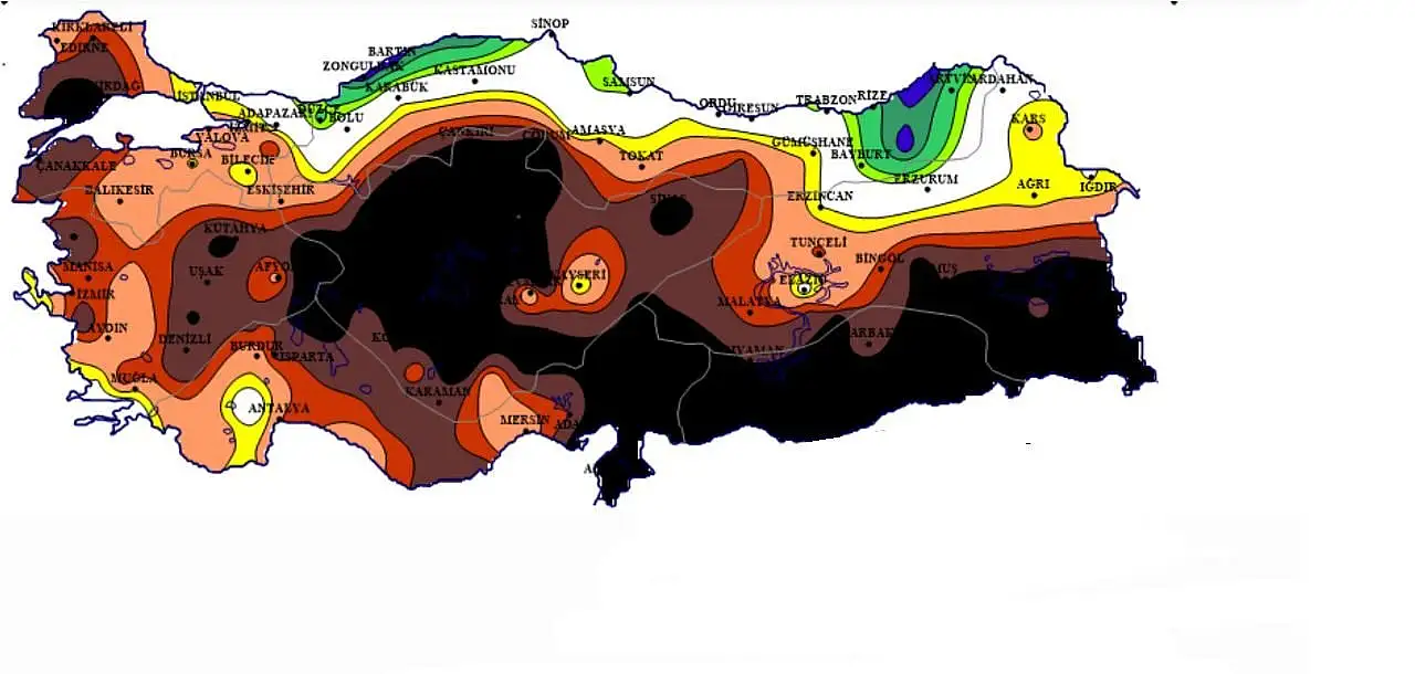 Çevre, Şehircilik ve İklim Değişikliği Bakanlığı Meteoroloji Genel Müdürlüğü, son yılların en kurak kışını yaşadıktan sonra Standart Yağış İndeksi (SPI - Standardized Precipitation Index) Metoduna Göre 2025 Mart Ayı Meteorolojik Kuraklık Durumu haritasını