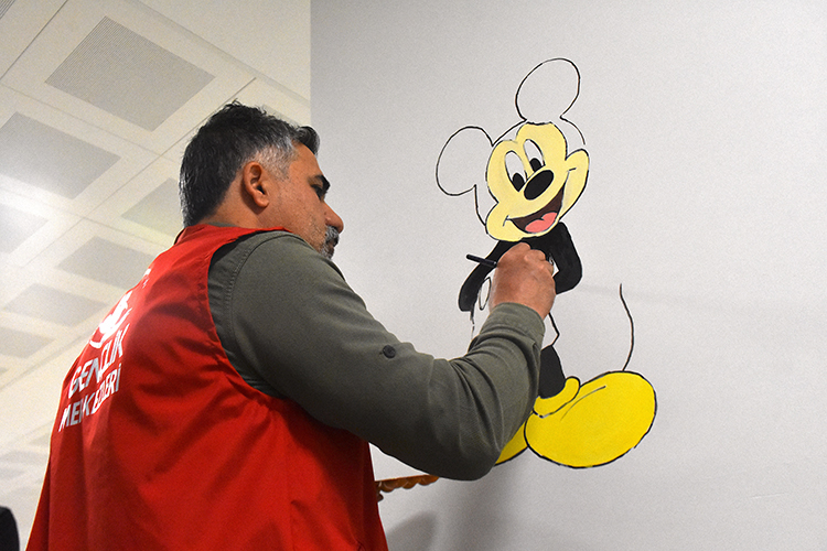 Hastane duvarlarını çocuklar için renklendirdiklerini dile getiren gönüllü resim öğretmeni Yunus Kaplan da "Çocukların hastane korkularını yenmesi ve biraz daha rahat hissetmeleri için çizimler yaptık. Arkadaşlarla eğlenerek bu işi tamamladık. İnşallah daha güzel işler yapacağız." dedi.