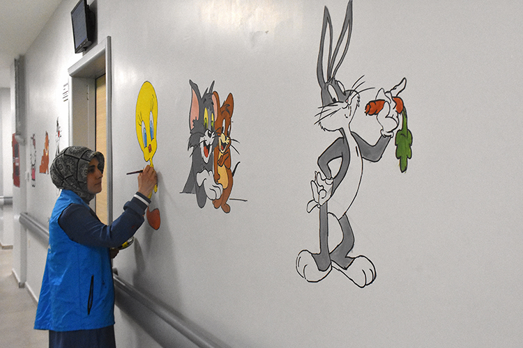 Boya ve fırçalarını alarak hastaneye gelen gençler, çocuk servisinin bulunduğu alanlara sevilen çizgi film karakterleri ve masal kahramanlarını, kadın hastalıkları ve doğum bölümü ile diğer polikliniklerin koridorlarına ise hastaların kendilerini daha iyi hissetmelerini sağlayacak resimler çizdi.