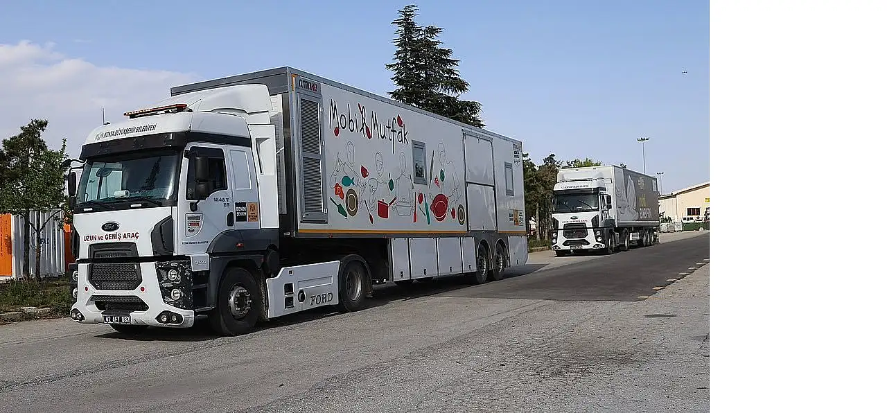 Asrın Felaketi'nde Hatay için yola çıkarılan obil mutfak, mobil fırın, çamaşırhane, yatakhane ve mobil duş araçları şimdi de İstanbul halkı için yola çıktı.