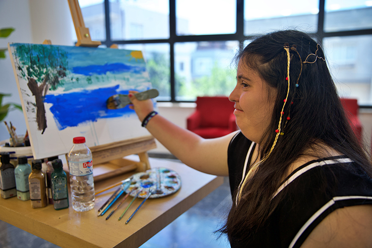 Down sendromlu Gülsün, yaşadığı kente yakın olması dolayısıyla Osmaniye Korkut Ata Üniversitesi (OKÜ) Mimarlık Tasarım ve Güzel Sanatlar Fakültesi Resim Bölümünü tercih etti.