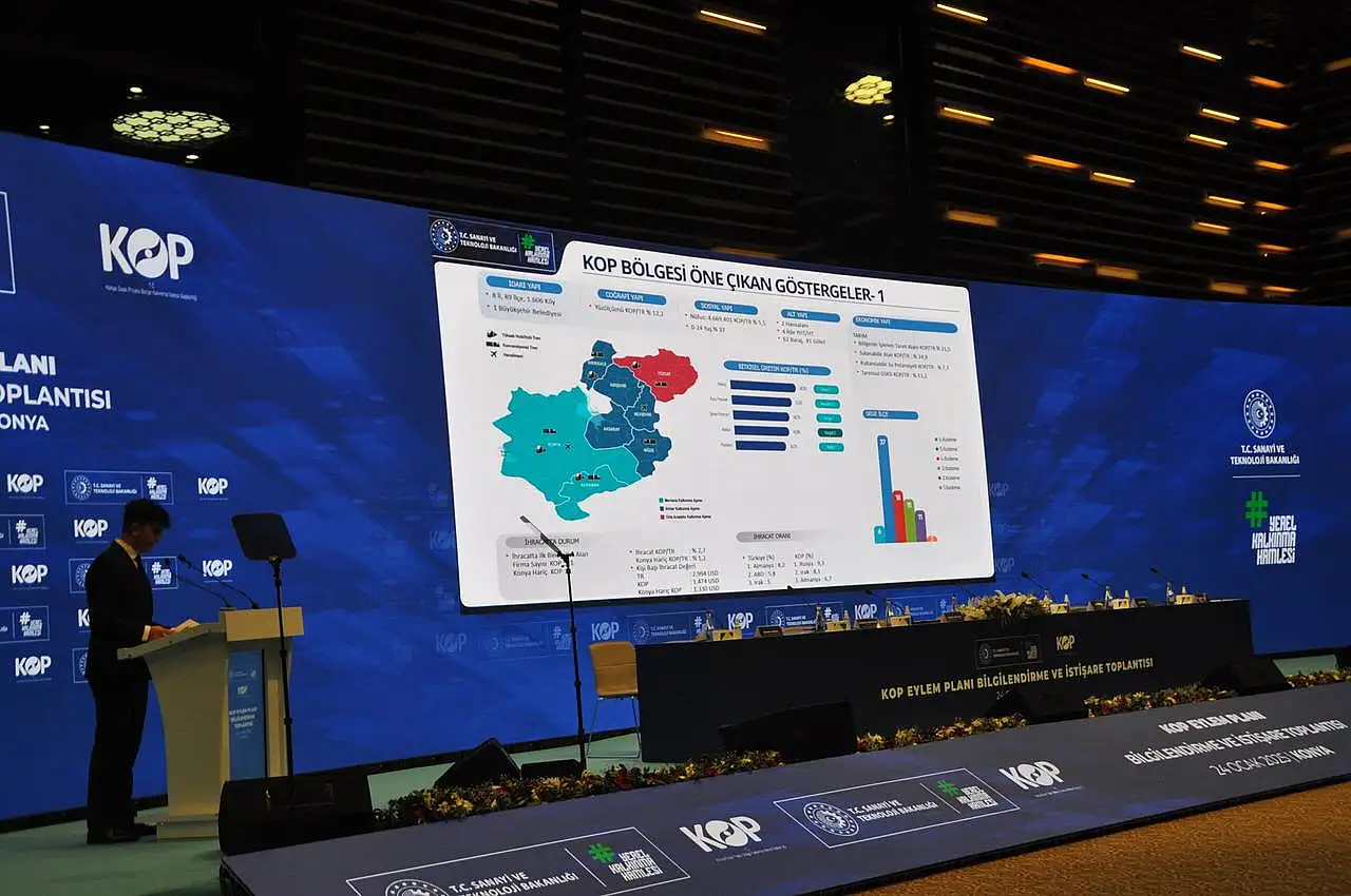 Sanayi ve Teknoloji Bakanlığı ev sahipliğinde düzenlenen Konya Ovası Projesi (KOP) Eylem Planı Bilgilendirme ve İstişare Toplantısı Selçuklu Kongre Merkezi’nde gerçekleşti. Toplantıya; Cumhurbaşkanı Yardımcısı Cevdet Yılmaz, Sanayi ve Teknoloji Bakanı Mehmet Fatih Kacır, Hazine ve Maliye Bakanı Mehmet Şimşek, Tarım ve Orman Bakanı İbrahim Yumaklı, Çalışma ve Sosyal Güvenlik Bakanı Vedat Işıkhan, Ticaret Bakanı Ömer Bolat, Enerji ve Tabi Kaynaklar Bakanı Alparslan Bayraktar, Büyükşehir Belediye Başkanı Uğur İbrahim Altay, Konya Ovası Projesi (KOP) Bölge Kalkınma İdaresi Başkanı Dr. Murat Karakoyunlu, Konya Sanayi Odası (KSO) Başkanı Mustafa Büyükeğen, AK Parti Konya İl Başkanı Fatih Özgökçen, Konya milletvekilleri, merkez ilçe belediye başkanları, Konya protokolü ve iş dünyasından çok sayıda kişi katıldı. Programda KOP ile ilgili bilgilendirme yapılırken sonrasında basına kapalı olarak, “KOP Eylem Planı Bilgilendirme ve İstişare Toplantısı” gerçekleştirildi.