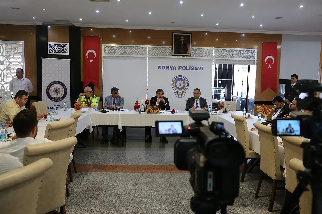 Konya Emniyet Müdürü Mahmut Karabulut, düzenlenen programla basın mensuplarıyla bir araya geldi.Göreve geldikleri sırada aldıkları tedbirlerin sert olmasıyla ilgili tepki aldıklarını belirten Karabulut, 'Başlangıçta çok sert tedbirler aldı diye çok eleşti