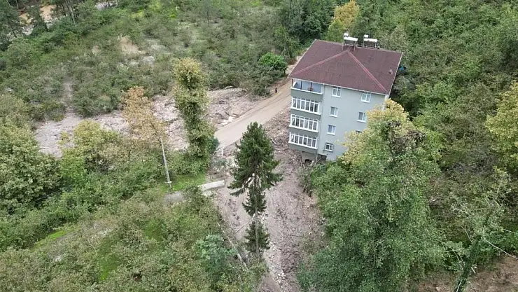 Trabzon'da önceki gün etkisini gören şiddetli yağışların ardından meydana gelen sel ve heyelanların izlerini sarılmaya çalışılıyor. 4 ilçede etkisini gösteren şiddetli yağışlar nedeniyle bazı mahalle yolları ulaşıma kapanırken, belediye ve karayolları ekiplerince yapılan çalışmalar sürüyor. Arsin ilçesinin Yolüstü mahallesinde bulunan Can Küme Evleri'ndeki 5 katlı bina ise heyelanı teğet geçti. Aşırı yağışların ardından büyük bir gürültü ile meydana gelen heyelan 5 katlı binanın zemin katında maddi hasara neden olurken, 5 hanenin bulunduğu binanın yolu da toprak ve taş parçaları ile kapandı. Binada yaşayan bazı vatandaşlar komşularının evine giderken, bina sakinlerinden Aziz Can, “Akşam saatlerinde evde oturuyordum. Aniden bir heyelan. Şiddetli bir şekilde geldi. Gördüğünüz gibi yolumuzu kapattı. Evden çıkarak komşunun evine sığındım. Apartmanda patlamalar var. Ciddi bir hasar var. Sanki deprem oldu. Büyük bir ses oldu. Koku yaşadık. Evime giremedim. Çok hafriyat var. Bir an önce açılması lazım. Binada 5 hane var” dedi.