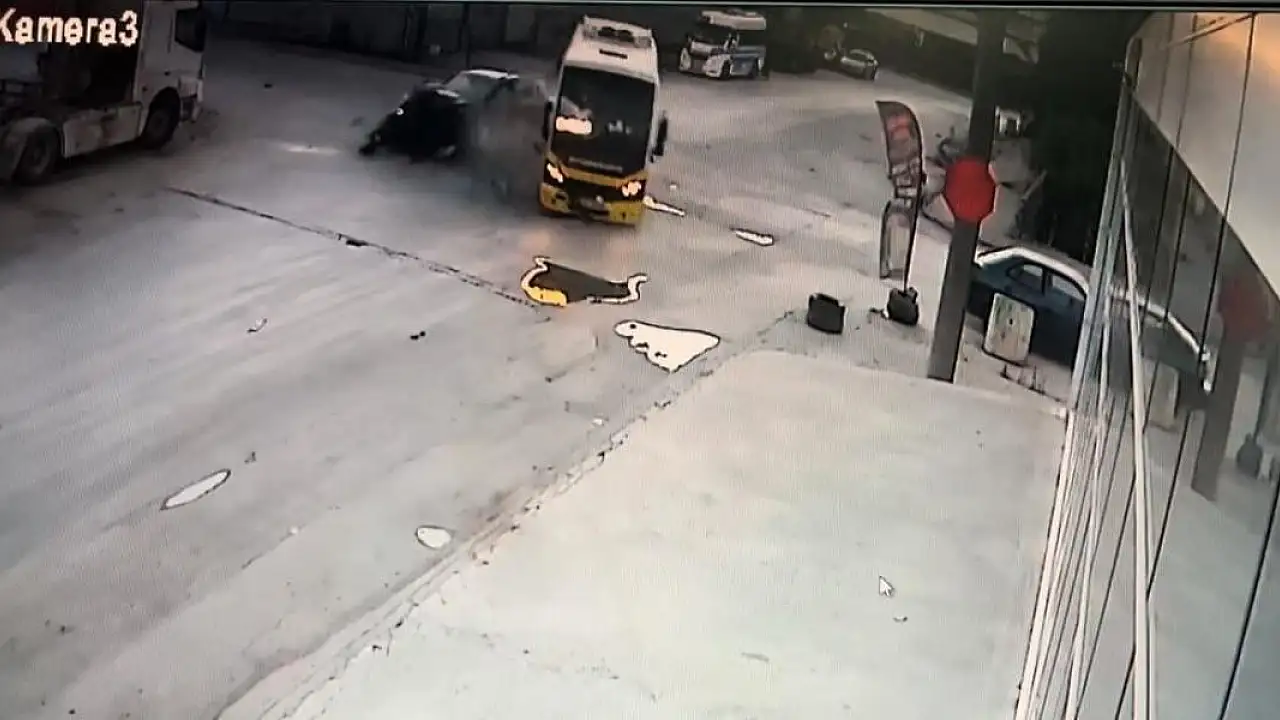 İHA'nın haberine göre Bursa'da hızla gelen otomobil, yolcuları taşıyan minibüse çarptı.Çarpmanın etkisiyle bir yolcu camdan fırlarken, 10 kişinin yaralandığı kaza anı kameraya yansıdı.