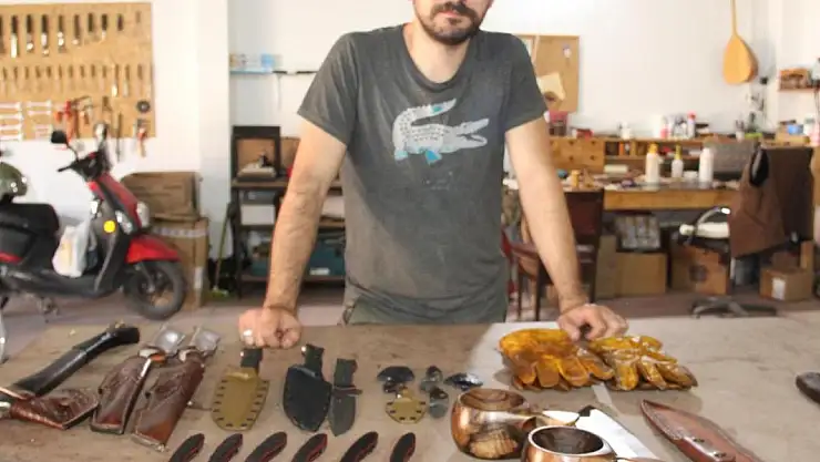Hobi olarak başladığı işi bir meslek olarak sürdürdüğünü belirten Muhammed Furkan Gürci, "Öğrenciyken kamp yapıyordum. Kampta kullanacağım malzemeleri koymak için deriden kılıflar yapmaya başladım. Kampta kullandığım malzemeleri bir zaman sonra kendim yapmak istedim. O şekilde hobi olarak başladı. Ahşaptan malzemeler yaptım. Bıçaklar yapmaya başladım. Pandemi süresinde Erzincan'daki evimizde küçük bir atölye kurdum. Orada üretim yapmaya devam ettim. Sonra yaptığım ürünleri sosyal medyada paylaşınca çevremden de yaptığım ürünlere talep gelmeye başladı. Bu talepler doğrultusunda üretip satmaya başladım. Daha sonra KOSGEB'den "İleri Girişimcilik Programı" desteği aldım. Erzincan merkezde küçük bir dükkan açtım. Yaklaşık 2-2,5 sene de orada üretim ve satış yapmaya başladım. İşler iyi gitti, oradaki dükkana sığmamaya başladık. Sonrasından organize sanayi bölgesindeki iş yerimize geçiş yaptık. Şu anda burada da genel olarak kamp malzemeleri, bıçak, balta, deri eldiven, ahşap malzemeler, kupa gibi ürünlerin üretimini yapıyorum. Türkiye'nin 81 iline aynı zaman da yurt dışında Avrupa'ya, Amerika'ya satış yapıyorum" diye konuştu.