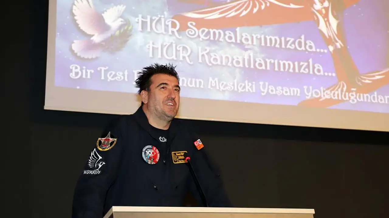 Türkiye'nin ilk temel eğitim uçağı HÜRKUŞ'un test pilotu Murat Özpala, Necmettin Erbakan Üniversitesi (NEÜ) Anka Havacılık ve Uzay Topluluğu tarafından düzenlenen "Köklerden Göklere: HÜRKUŞ'un Hikayesi" adlı programda öğrencilerle bilgi ve tecrübelerini paylaştı.