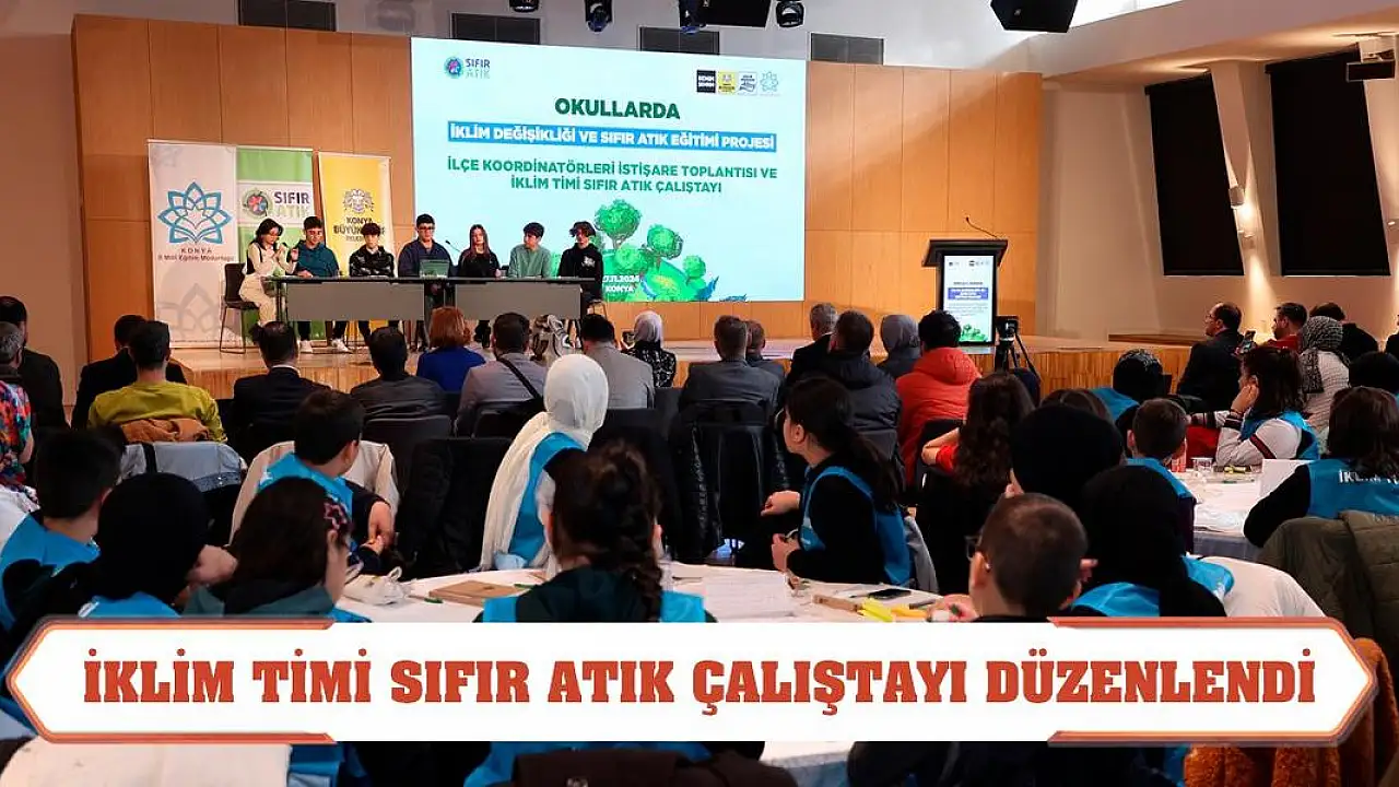 Konya Büyükşehir Belediyesi ve İl Millî Eğitim Müdürlüğü tarafından 31 ilçedeki okullarda yürütülen 'İklim Değişikliği ve Sıfır Atık Eğitimi Projesi' kapsamında İlçe Koordinatörleri Toplantısı ve İklim Timi Sıfır Atık Çalıştayı yapıldı.Büyükşehir Taş Bina
