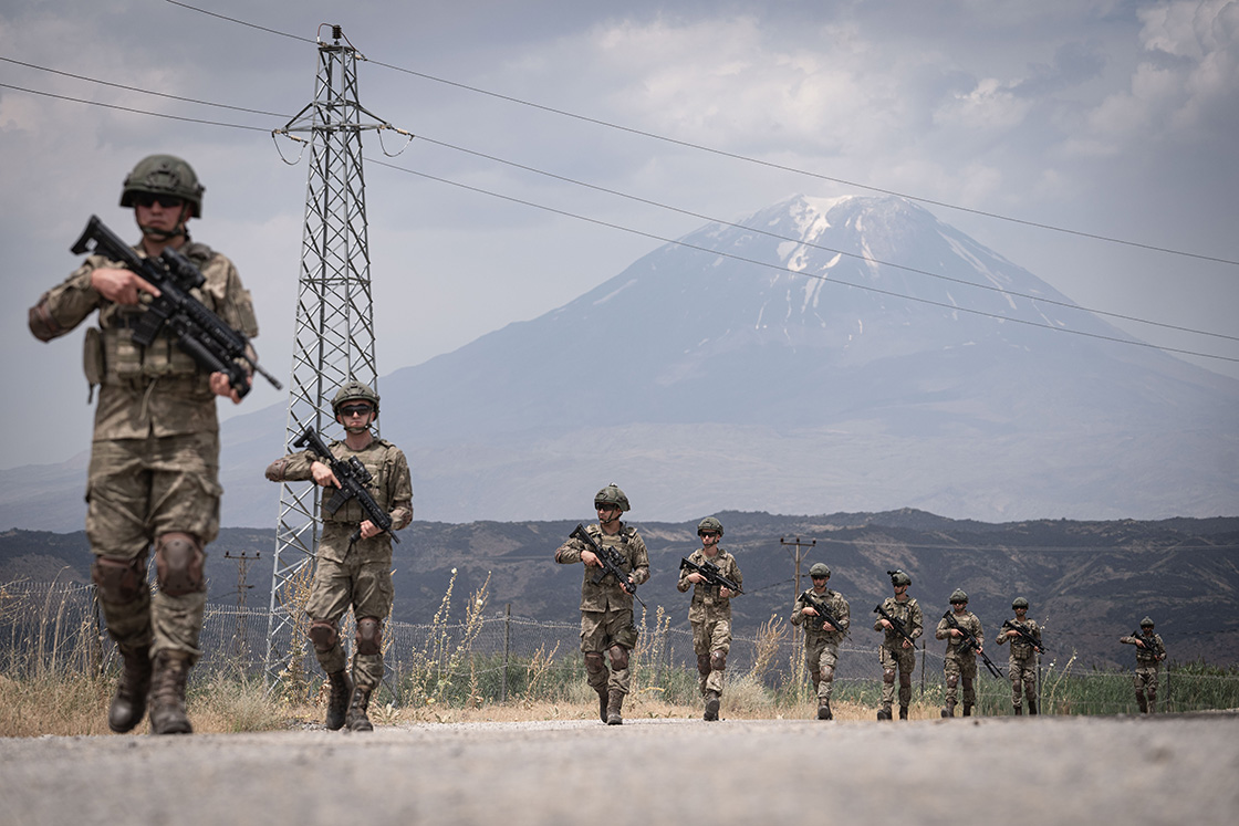 Türkiye-İran sınırının Ağrı bölümünde "vatan nöbeti" tutan Mehmetçik, elektro-optik kuleler, gece görüşlü termal kameralar, aydınlatma sistemi ile sismik sensörlerle donatılan güvenlik duvarını gözetim altına alarak yasa dışı geçişlerin önüne geçiyor.