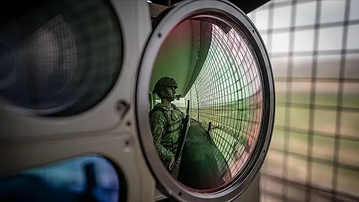Gece gündüz demeden bir an olsun gözünü sınırından ayırmayan Mehmetçik, sınıra yapılan duvar ve çevresindeki başta gece görüş özellikli kameraların yanı sıra her türlü titreşim hareketlerini tespit edebilen akustik sistemler vasıtasıyla yasa dışı olayları engelliyor.
