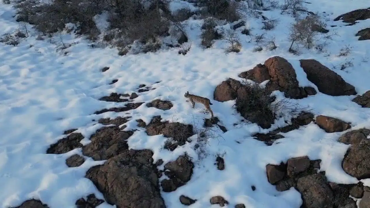 Nesli tükenme tehlikesi altında olan vaşak, Bayburt'un Kırkpınar köyünde görüldü.İlk defa vaşak gören Bayburtlu vatandaş, karlı arazi üzerinde dolanan vaşağı cep telefonu kamerasıyla görüntüledi.