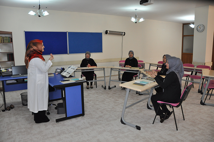 "Diyanet İşleri Başkanlığımız, her yıl bize yeni materyaller hazırlayıp gönderiyor. Biz de bunları derslerimizde kullanmaya ve uygulamaya özen gösteriyoruz, ayrıca kursumuzda işaret diliyle elifba kitaplarımız mevcut. Bu kitapla elifba öğrenen kursiyerimiz, daha sonra Kur'an-ı Kerim'i kolaylıkla el yardımıyla okuyabiliyor. Kadınlar, burada iletişim kurabildikleri, kendilerini ifade edebildikleri bir ortam görüyorlar. Benim de işaret dilini bilmem onlarla daha rahat iletişim kurmamı sağlıyor. Onlara yardımcı oluyorum, ayrıca kurs onlar için bir buluşma yeri, sosyal aktivite alanı gibi. Sosyokültürel açıdan bu kurs onlar için çok iyi. Kur'an-ı Kerim'in yanı sıra aile ilişkisi ve ahlaki kurallar konusunda da bilgi veriyoruz. Aileler de bu durumdan oldukça memnun ve bize teşekkür ediyorlar."