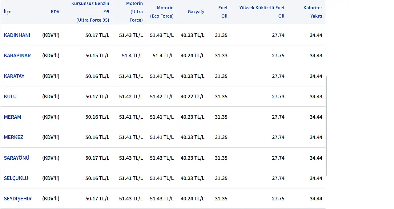KONYA'DA GÜNCEL AKARYAKIT FİYATLARI