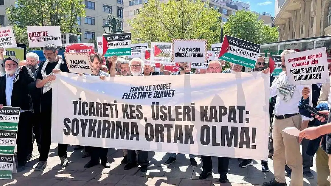 Ticaret Bakanlığı tarafından alınan İsrail'le ticareti kısıtlama kararını yeterli bulmayan bir grup, İsmet İnönü-1 Caddesi'nde bir araya gelerek eylem yaptı. İsrail'le devam eden ticaretin tamamen sonlandırılması, diplomatik ilişkilerin kesilmesini ve İsrail'i koruyan üslerin kapatılmasını talep eden grup, sloganlar atarak basın açıklaması yaptı.