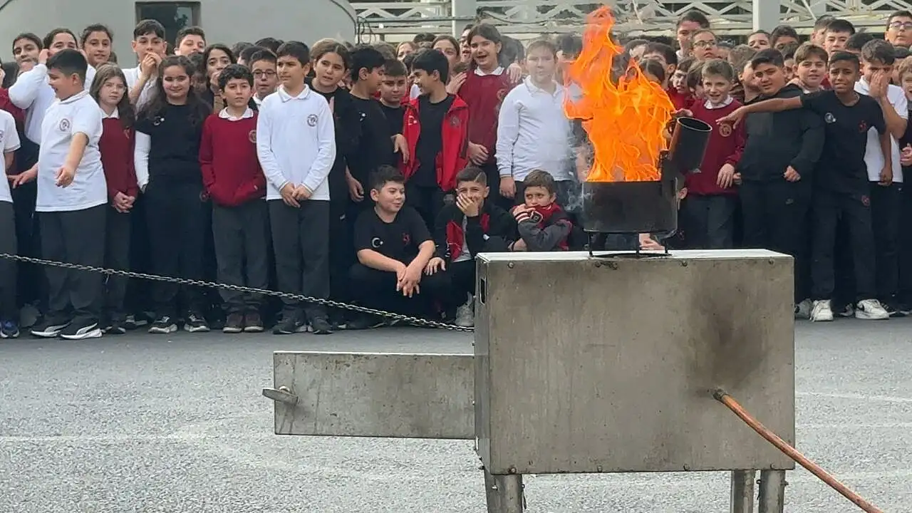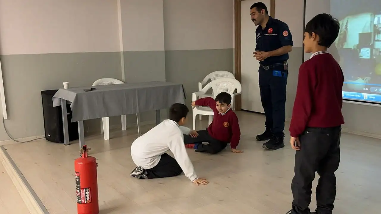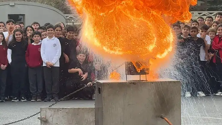 Okul bahçesinde kızgın yağın kontrollü yakılmasının ardından alevlere su ile müdahale edilmesi durumunda oluşacak olan parlama ve patlamalar uygulamalı olarak gösterildi. Eğitimi dikkatle izleyen öğrencilerden bu tür durumlarda tava ve tencerenin ıslak bezle örtülerek hava ile bağlantısını kesmeleri istendi.