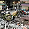 Öte yandan, çöken bina park halindeki araçların üzerine yıkılırken, yoldan geçen belediye otobüsünde de hasar oluştu.