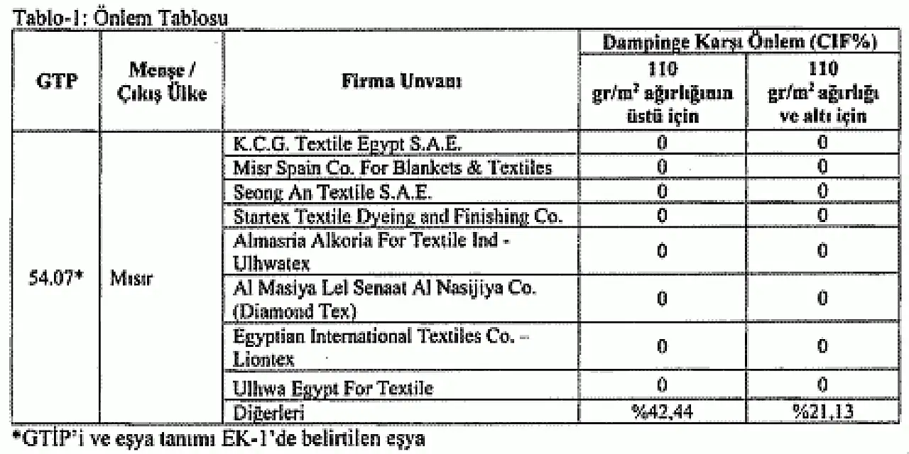 Bakanlık tarafından yürütülen soruşturma kapsamında, bazı Mısır menşeli üretici ve ihracatçıların yürürlükteki dampinge karşı önlemlerden kaçınmak dışında bir gerekçesi bulunmadığı tespit edildi. Karar kapsamında belirtilen firmalar hariç diğer üretici ve ihracatçılardan yapılan ithalat, İthalatta Haksız Rekabetin Önlenmesine İlişkin mevzuat çerçevesinde dampinge karşı önlemlere tabi olacak.