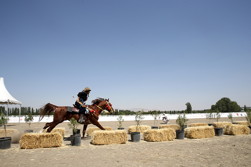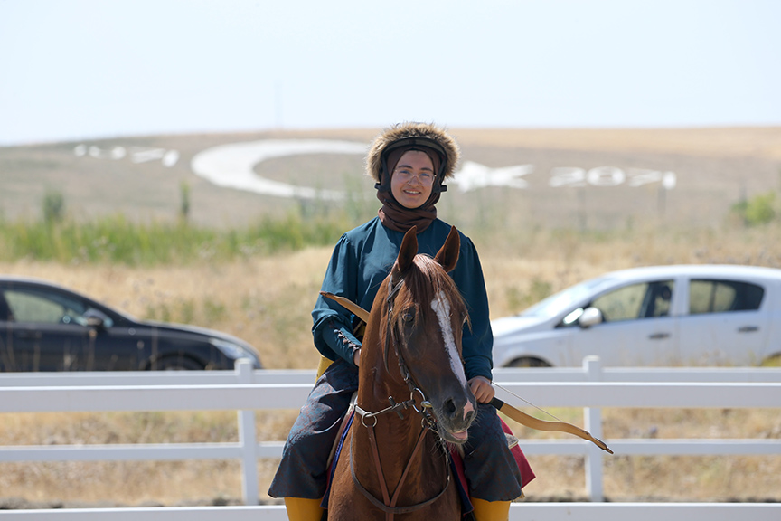 "Dizdarbey" isimli atıyla Eskişehir'den gelerek yarışmaya katılan Ertürk, 3 yıldır atlı okçuluk sporunu yaptığını söyledi.
